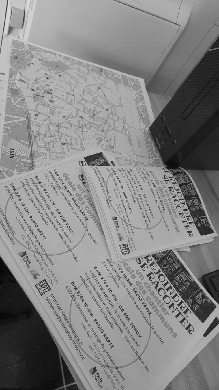 On a partagé en deux phases: premièrement, on a revu les chantiers précédents pour redessiner un parcours de questions ouvertes et outils de mise en commun. Deuxièmment on a partager le savoir-faire de la radio en produisant un bref podcast “Flash-info événements La Chapelle”