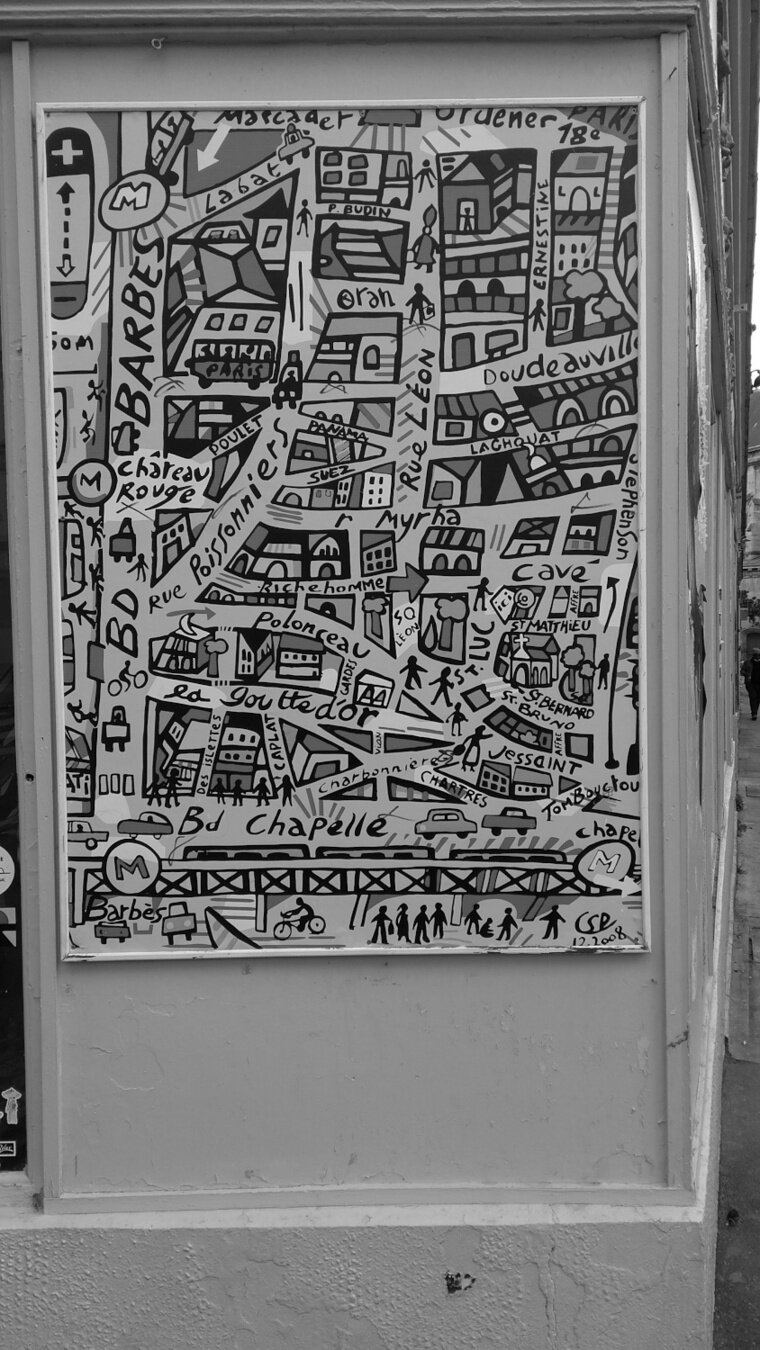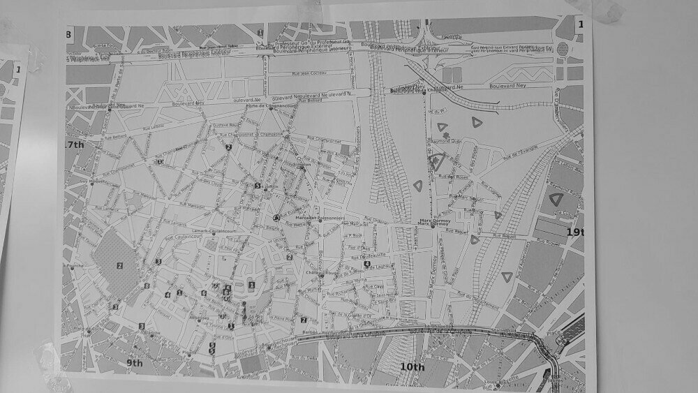 Carte du quartier de la Goutte d’Or émaillée de qtcode qui permettent d’accéder à des récits audio sur le quartier.