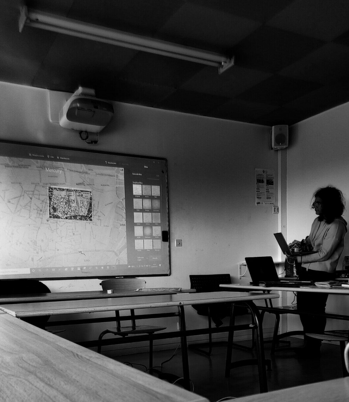 Les questions qui ont orienté ce dernier chantier ont été formulées en réfléchissant au futur du quartier. On s’est intéressé.e.s aux outils qui peuvent être aisément ré-appropriés par les habitants et les associations du quartier qui veulent mettre des ressources en comment. La métaphore de l’école à donc été reprise en tant que lieu d’apprentissage pour une communauté des pratiques, ouvert et horizontal. Ici les questions que nous ont inspiré:
