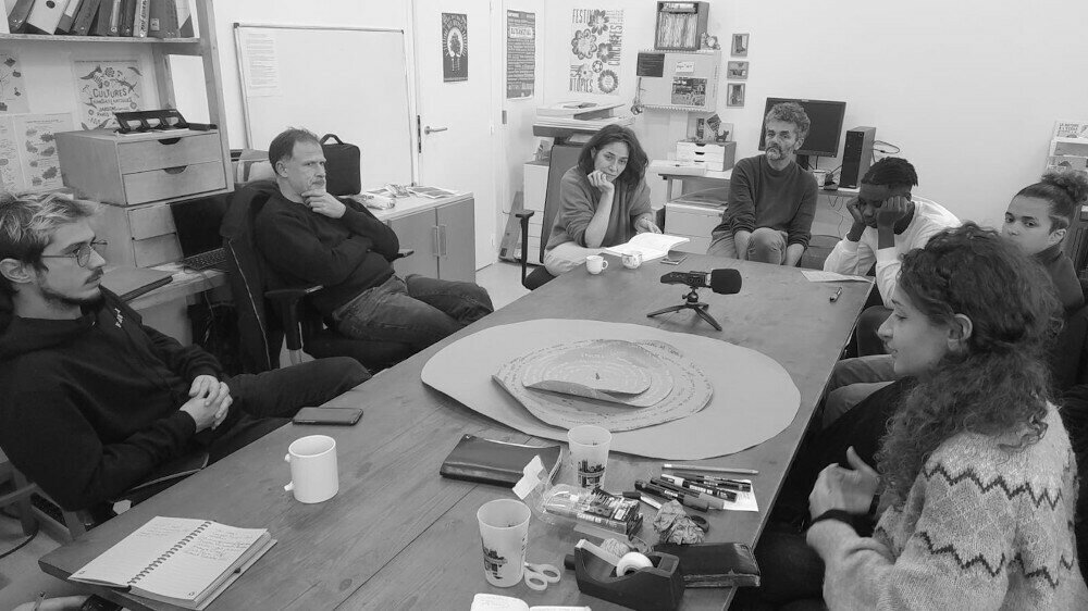 Podcast: la radio est un outils utile pour tisser des liens, à la fois dans les moments de création - parmi les voix de la radio, mais aussi pour ceux qui écoutent. Le choix de proposer un “Flash info événements La Chapelle” montre que la radio peut fonctionner aussi pour assembler un calendrier partagé, outil en discussion dans le 4 chantier - faire de l’espace en commun.