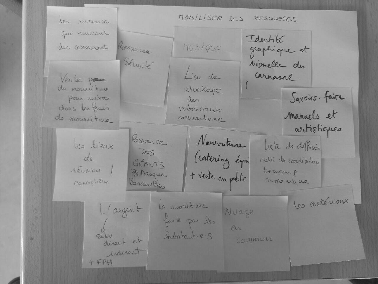 A partir de ces constats, on a concentré notre attention aux pratiques de partage que les organisations mettent en place tous les jours pour leur actions. En plus, on a reconnu que parfois le manque de ressources économiques nous pousse à reconnaître l’importance d’autres types de ressources que normalement on ne voit pas: le temps et énergies des personnes, les ressources naturelles, des objets qu’on utilise ensemble, etc.