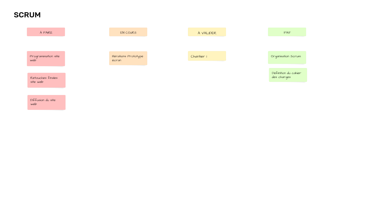 Le travail est décomposé en tâches, organisées selon leur état d’avancement « à faire », « en cours », « à valider », « terminer ».