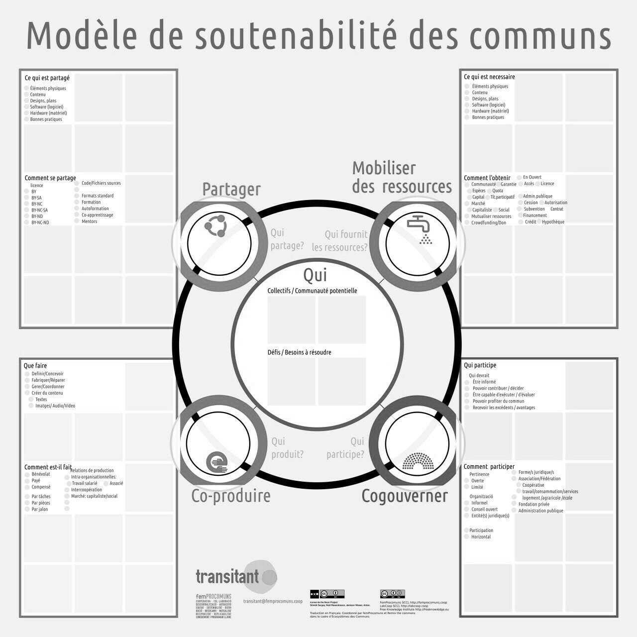 Le Modèle de soutenabilité des communs: https://www.remixthecommons.org/fr/modele-de-soutenabilite-des-communs/