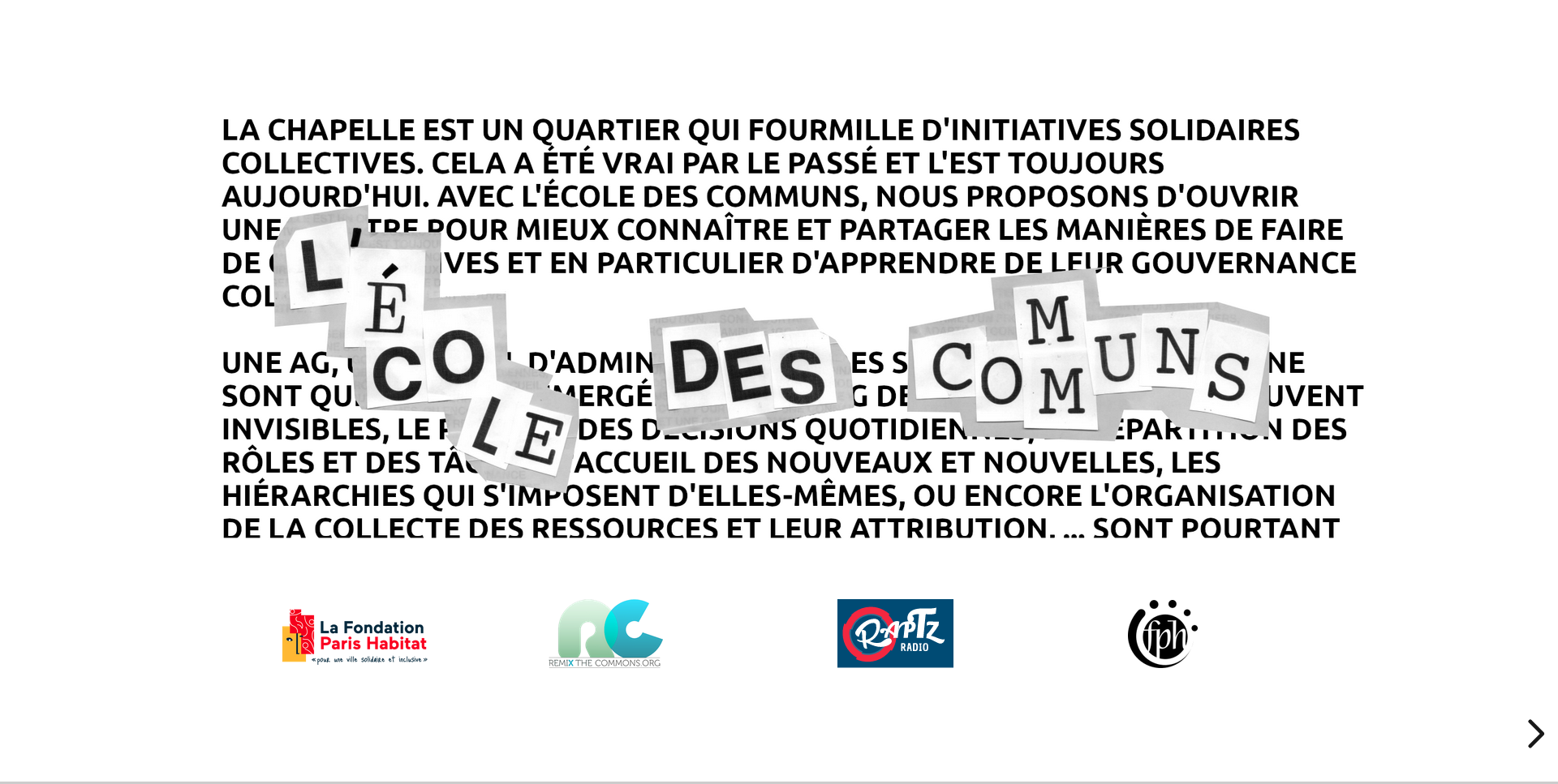5 chantiers pour partager et expérimenter une panoplie d’outils pour une gouvernance vivante de nos projets à La Chapelle, proposés par radio RAPTZ et Remix the commons.