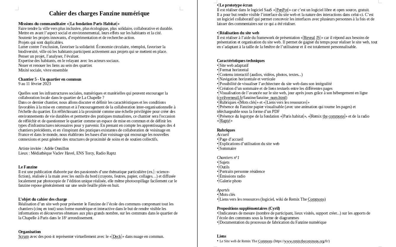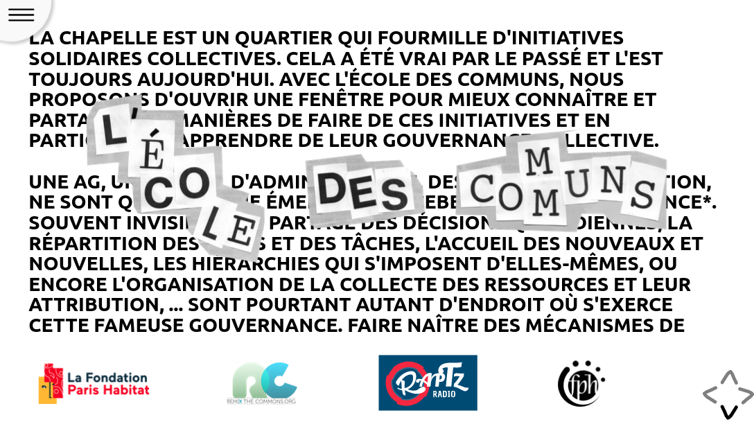 Le Fanzine Numérique a été réaliser à la suite du Fanzine papier. Comme celui-ci, il a pour but de rendre visible et mettre en commun les réflexions, les apports des différents chantier autour de la gestion des communs mais en bénéficiant des apports du numérique pour rendre visible différemment l’école des communs.