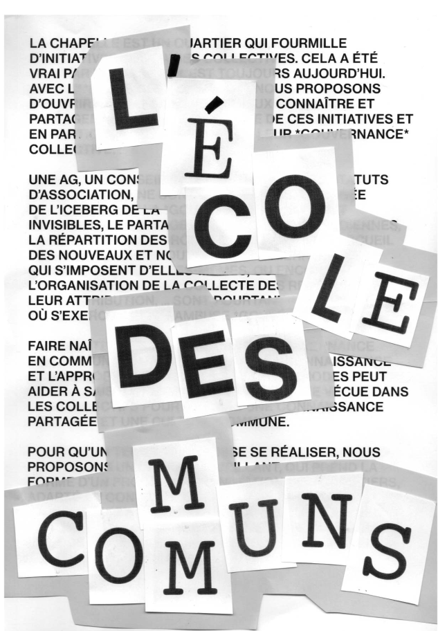 Comment imaginez-vous (spatialement) l’école des communs de la chapelle ?